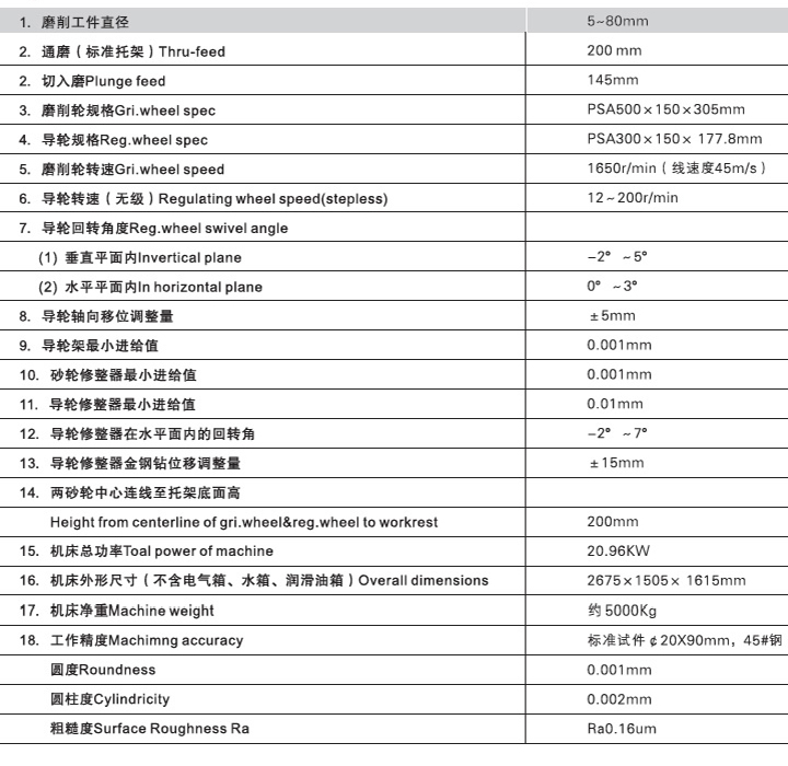 本机床适用于各种圆柱体零件,环形零件的无心通磨磨削以及圆锥角度度小于3度的圆锥体和成型回转体零件的元心切入磨削,适用于大批量生产。